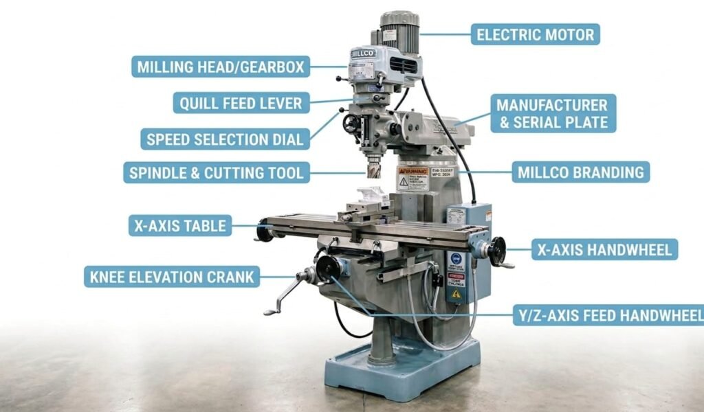 Knowledge of the main components of Milling Machines is useful in ensuring their proper usage and maintenance. Some of these components are as follows: