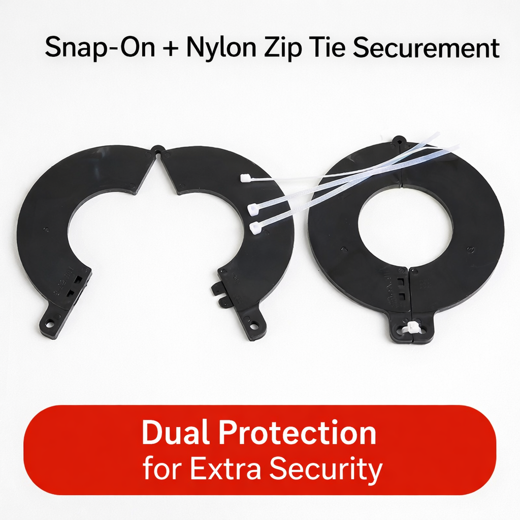 Easily attach around shafts without tools. The split design allows quick mounting and removal, saving time during maintenance. - Dual Security Locking System